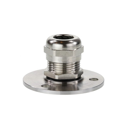 is a flat circular flange for Ø12 mm probes, made of brass nickel plated.