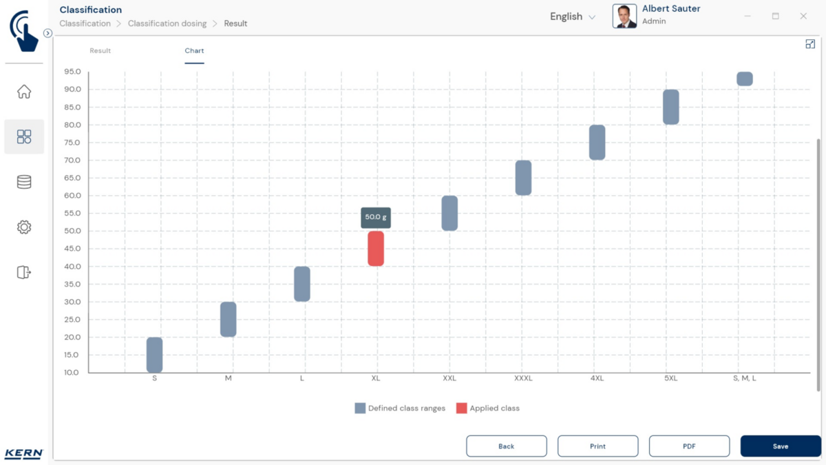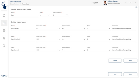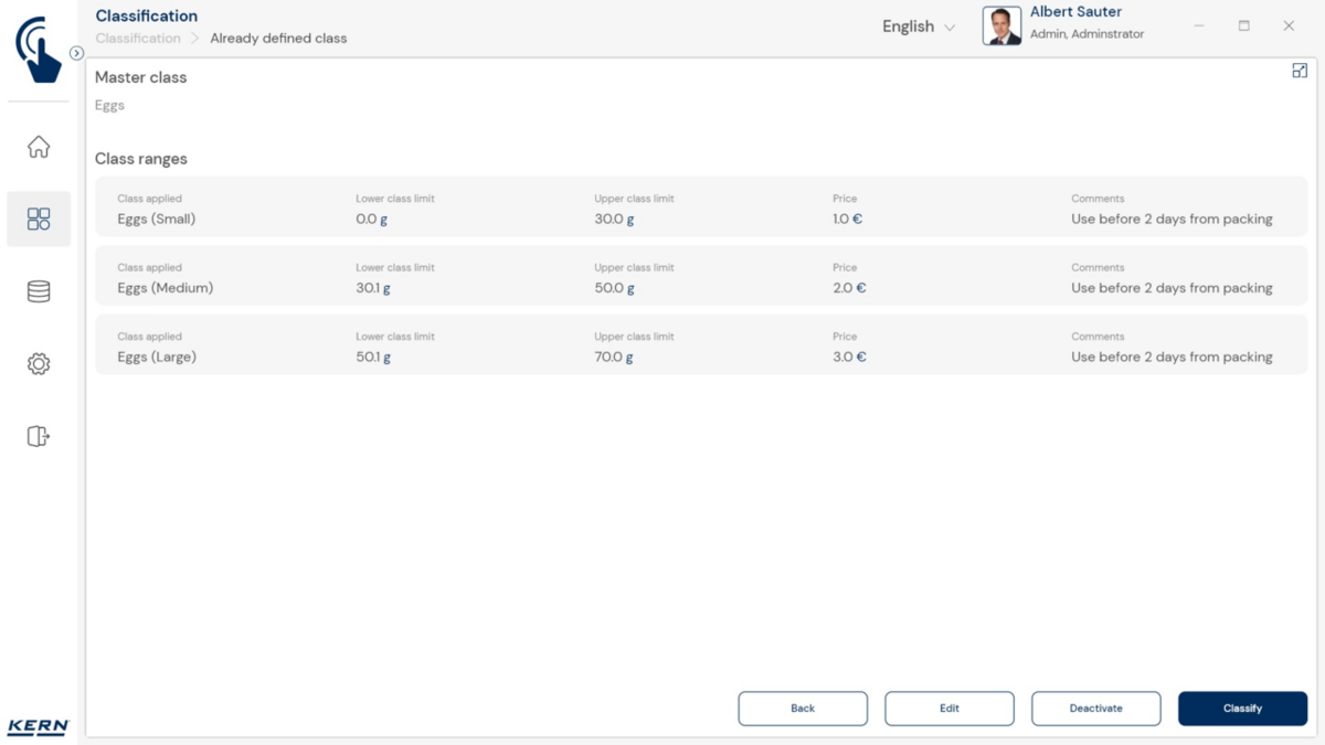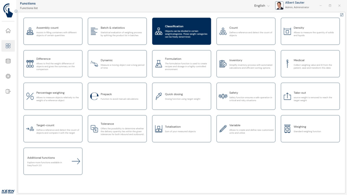 - Klassifitseerimisfunktsiooni ülesanne on kategoriseerida kaalutavad objektid kindlatesse, vabalt määratletavatesse kaaluklassidesse. See võimaldab objekte hõlpsalt sorteerida ja tähendab, et kasutaja ei pea enam kaalumistulemusi ette lugema ja tõlgendama.