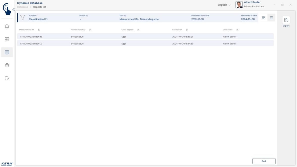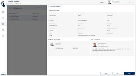 - ID-turvalisus: „ID-turvalisus” pakub võimalust salvestada iga kaalutud ja salvestatud klassifitseerimistulemus unikaalse ID-numbri (dünaamilise objekti ID) ja ID-nimega (dünaamilise objekti nimi). Salvestusprotsessi saab käivitada poolautomaatselt või täisautomaatselt ning alati pärast koorma kaalult eemaldamist ja uuesti pealekandmisel. See tähendab, et kasutaja ei pea masssalvestustoimingute jaoks ühtegi nuppu vajutama ja saab tõhusalt töötada.