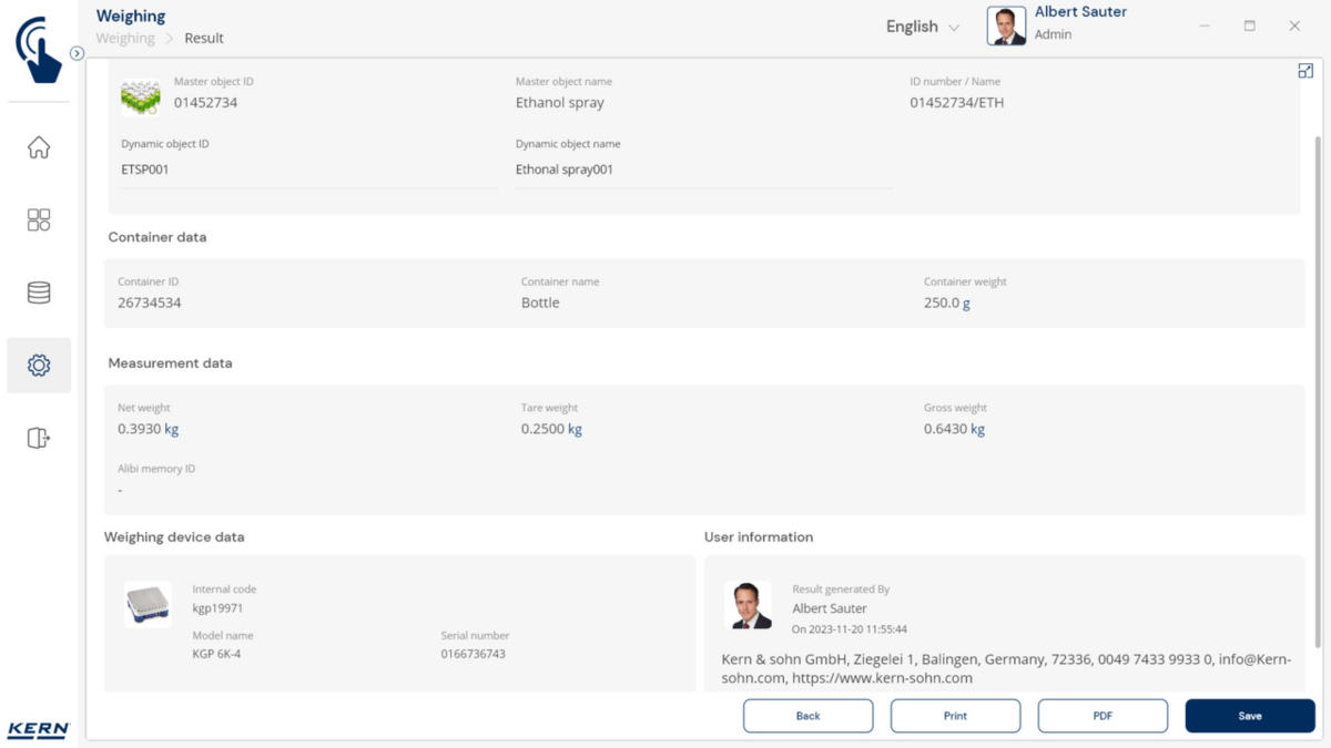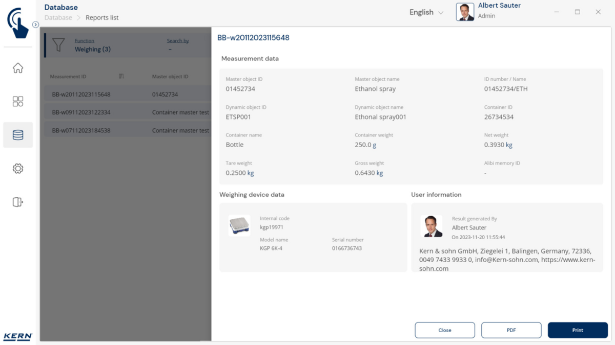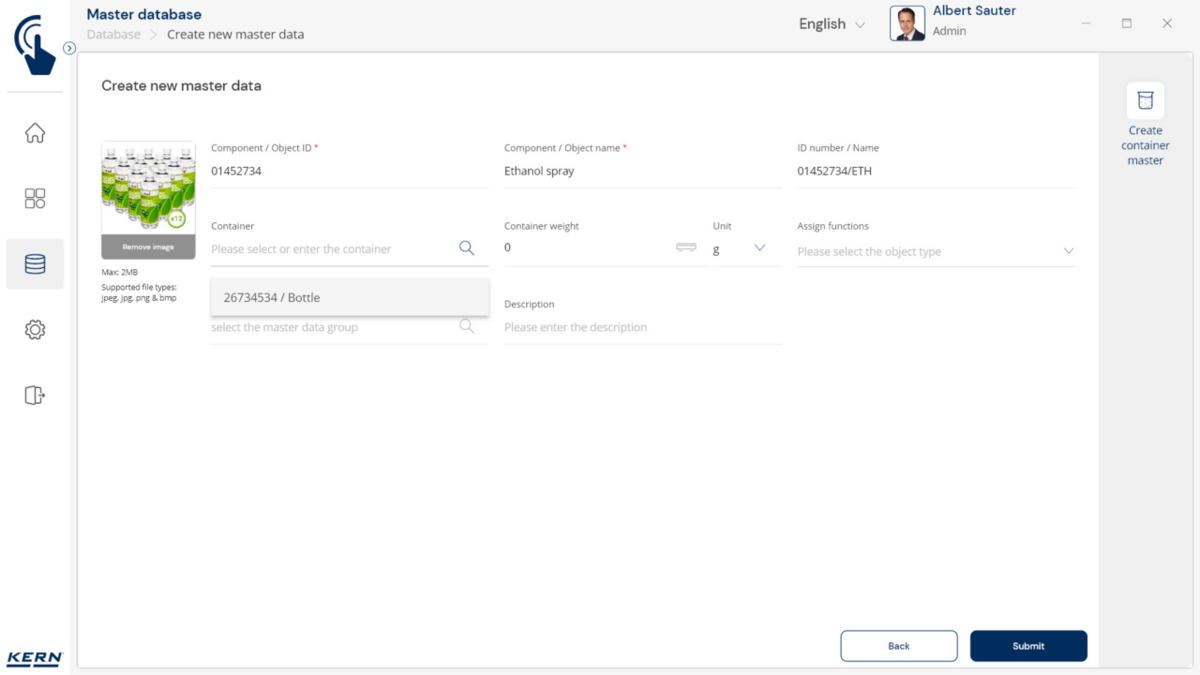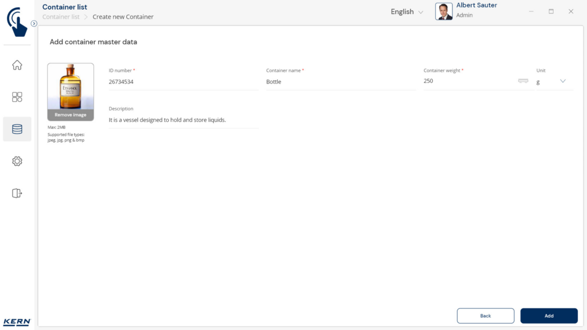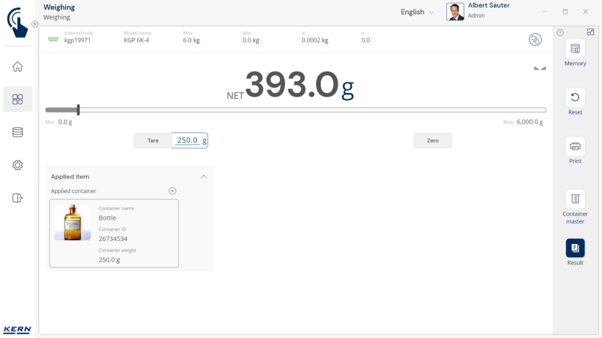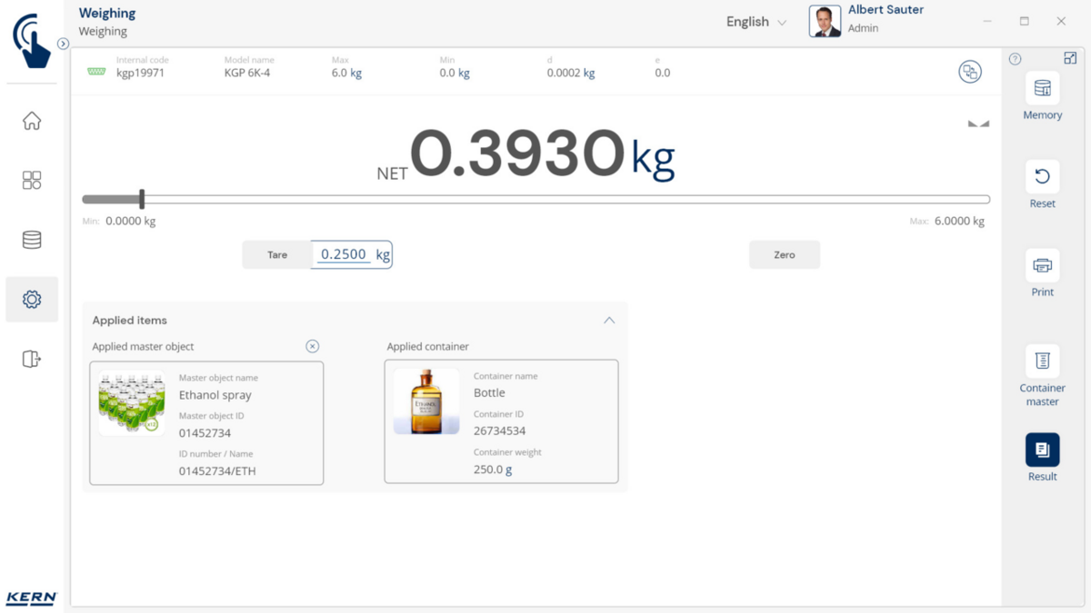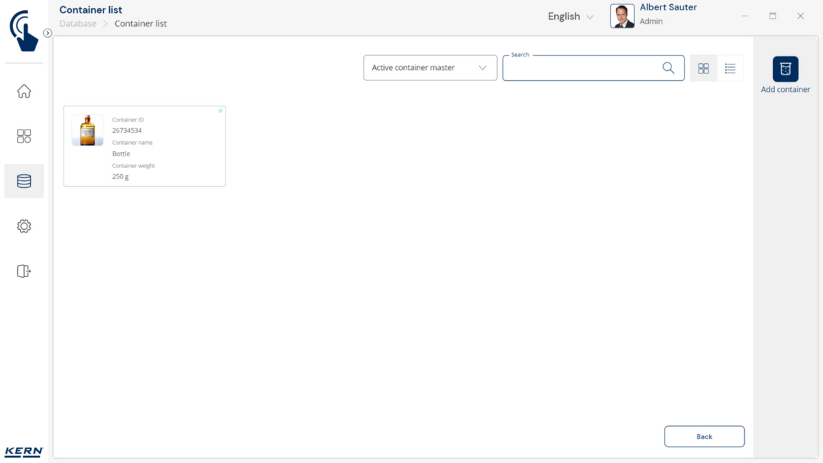 - Konteinerite haldus: Erinevaid esemeid hoitakse ja kaalutakse sarnastes konteinerites. Nende konteinerite taarakaalu saab hallata tsentraalselt SET-18 Container Masteri abil. Kui konteineri kaal muutub, värskendatakse uut taarakaalu lihtsalt Container Masteris ja rakendatakse automaatselt kõigile seotud esemetele ja funktsioonidele rakenduses.