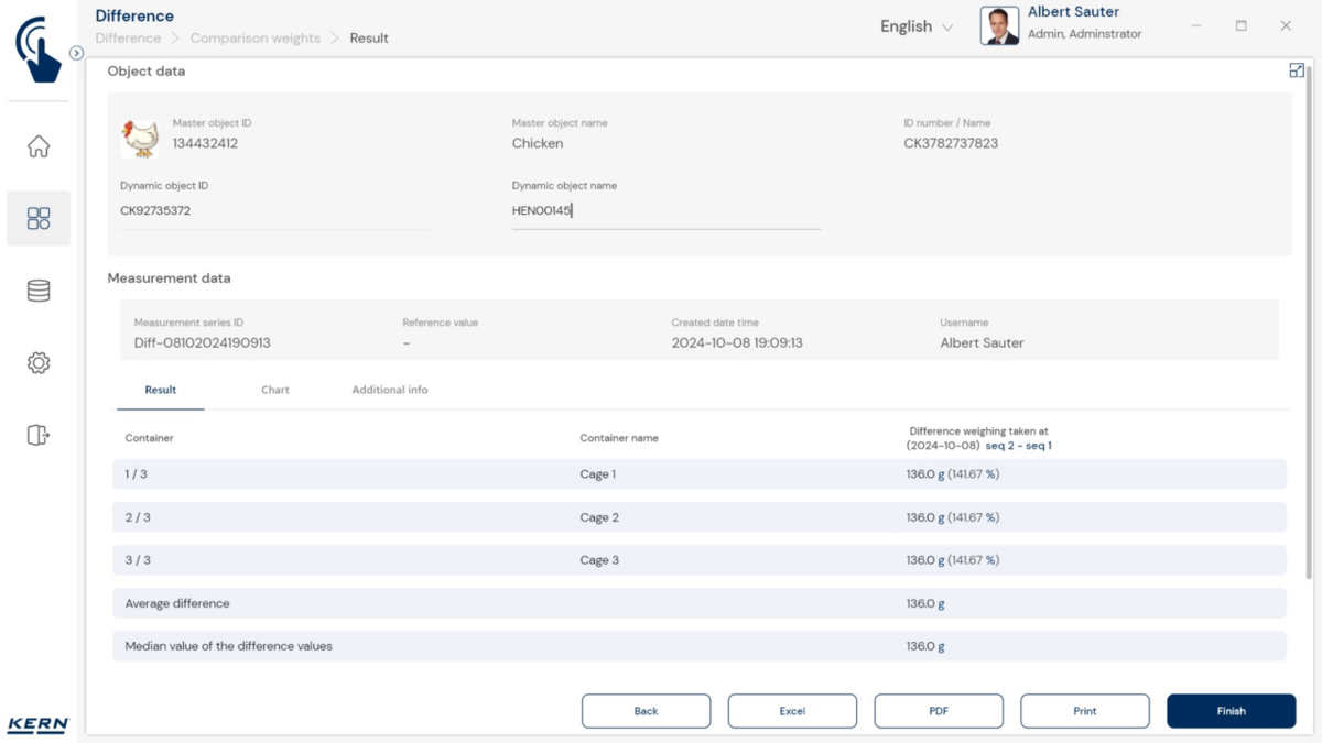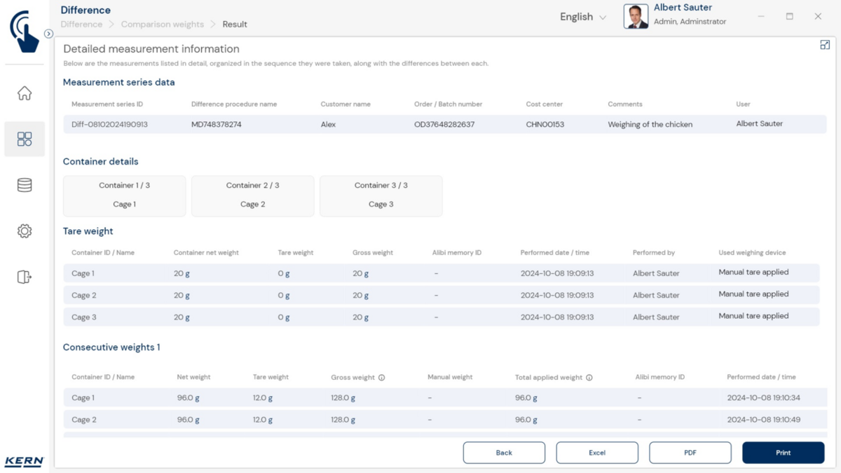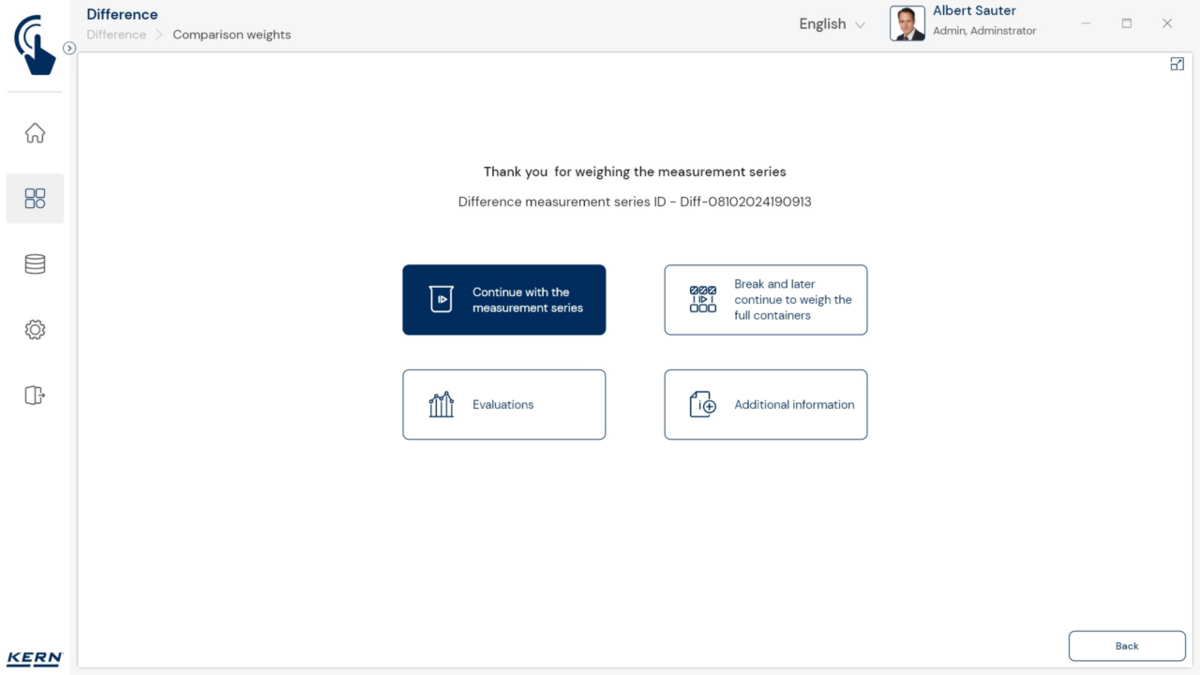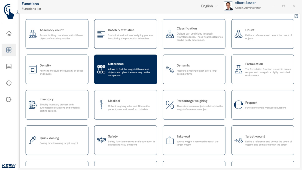 - Erinevusfunktsioon toetab kasvu- või muutusprotsesside jälgimist ja hindamist, nagu see võib toimuda näiteks bioloogilistes testides rakukultuuridega (monitooring). Selles funktsioonis saab defineerida, nimetada mis tahes arvu proovikandjaid, nt Petri tasse kultuurikeskkonnaga ja registreerida vastava algkaalu. Jälgitavad proovid lisatakse nendele proovikandjatele ja registreeritakse algkaalud. Erinevusfunktsiooni abil saab neid proovikandjaid regulaarsete intervallidega ikka ja jälle kaaluda. Erinevusfunktsioon arvutab automaatselt kaaluerinevuse, st erinevuse võrreldes algkaaluga (nt kasv või muud bioloogilised, keemilised muutused). Need erinevused salvestatakse ja hinnatakse. Mis tahes erinevuste statistilist hindamist saab alla laadida graafika ja andmetena.