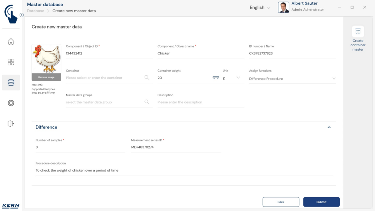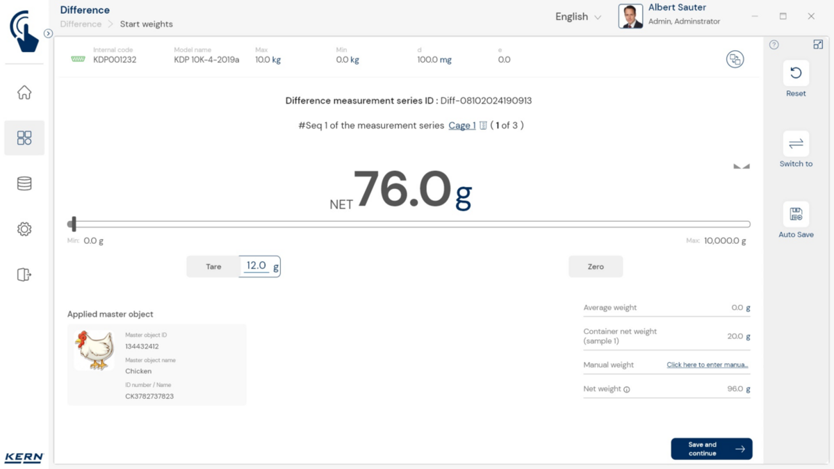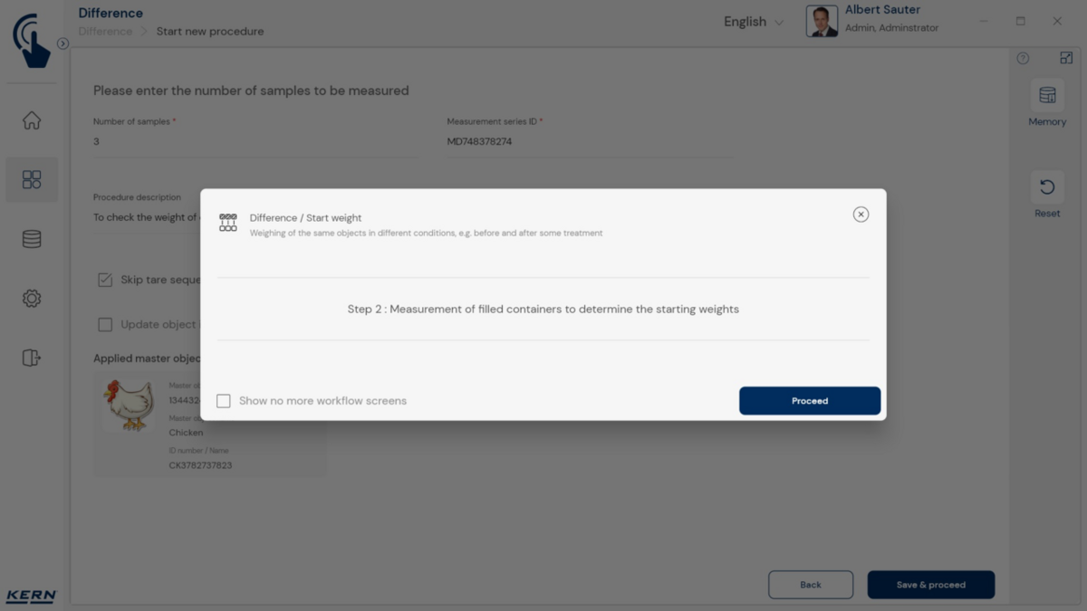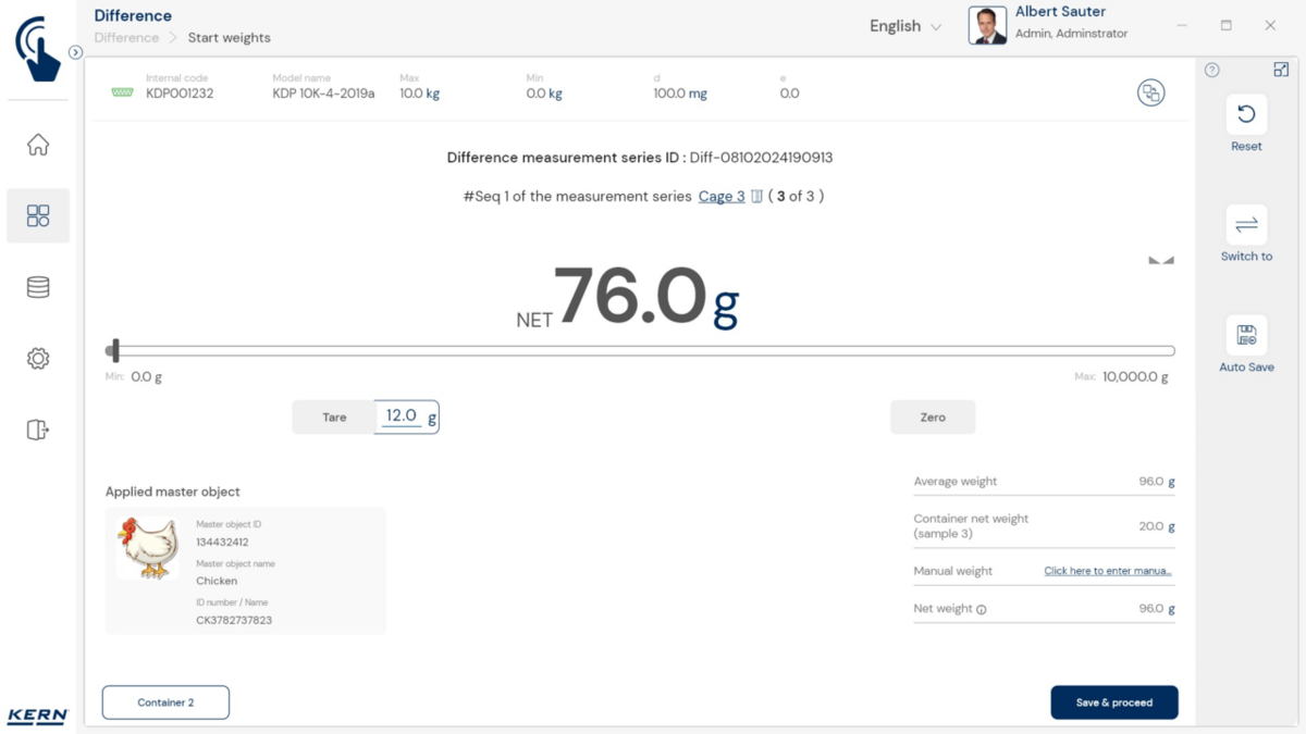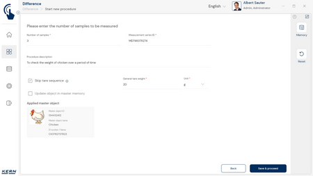 - Kesksed põhiandmed mälu : Neid kaalumisjärjestusi saab salvestada mälu süsteemist koos konteinerite (nt Petri tasside) numbri, konteineri ID-de, järjestuse ID-numbri, järjestuse nime, partii nimetuse jne-ga. Sel viisil ei pea selle järjestuse andmeid iga korduva järjestuse jaoks uuesti sisestama, vaid neid saab süsteemist hõlpsalt taastada. mälu . Petri tasside taara väärtused saab salvestada ka põhiandmetesse. mälu . Need lahutatakse seejärel automaatselt igast kaalumistulemusest
