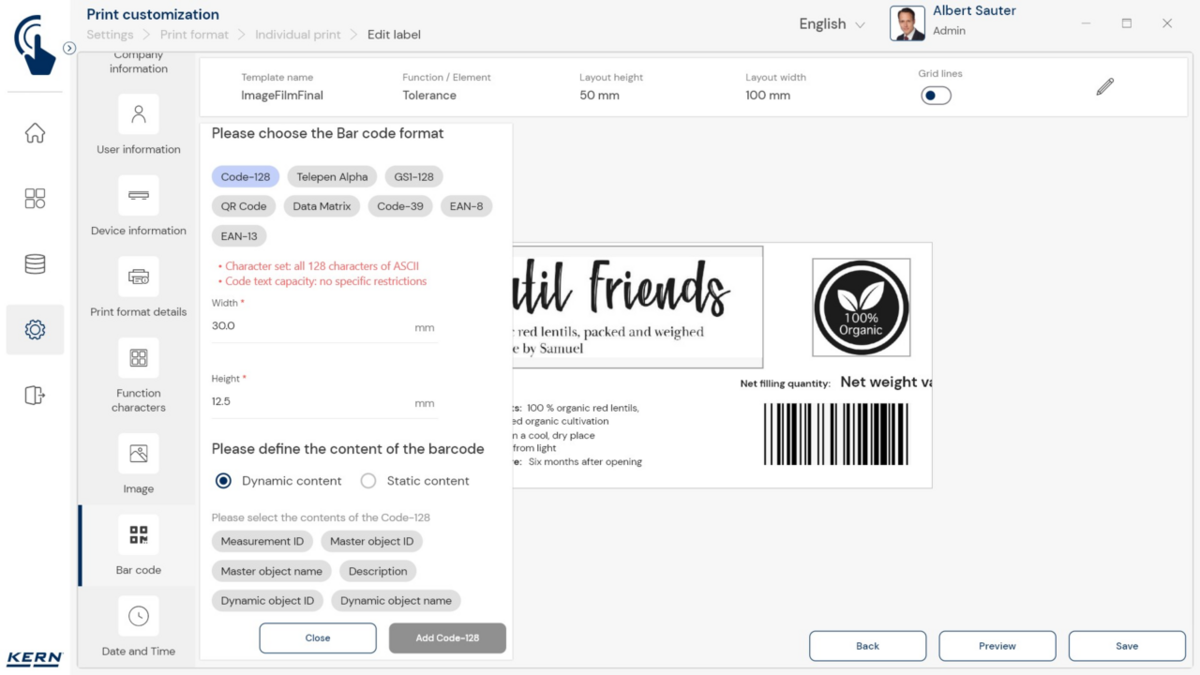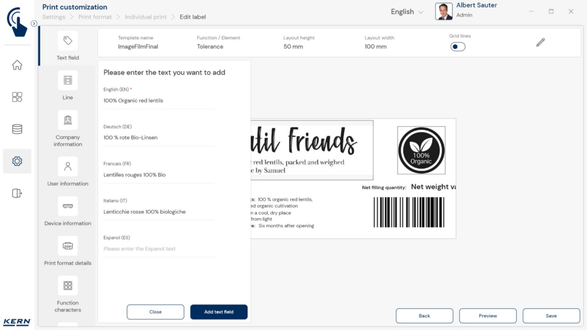 - KERN-i tugi individuaalsete väljatrükkide kujundamisel: Meil on hea meel teid teie isikliku väljatrüki loomisel toetada. Palun võtke ühendust aadressil ETsupport@kern-sohn.com.